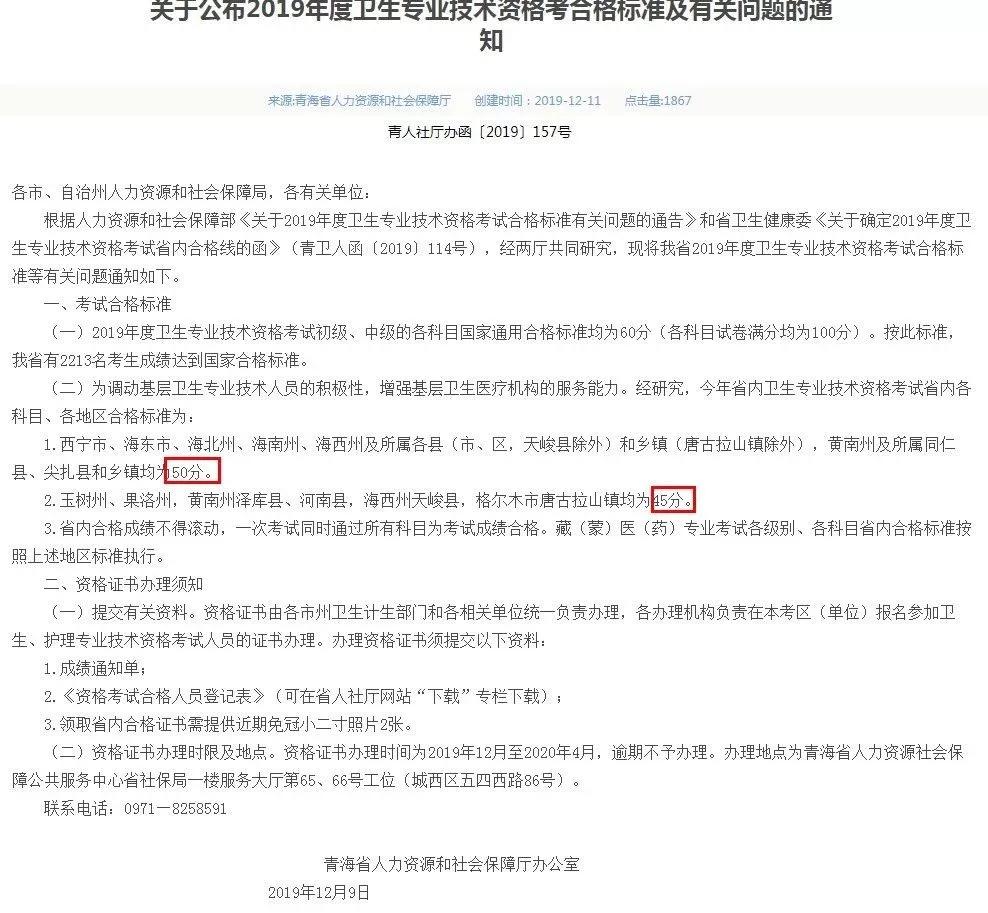 然而,青海在19年底发布通知,部分地区的分数线竟然只要50分、45分!