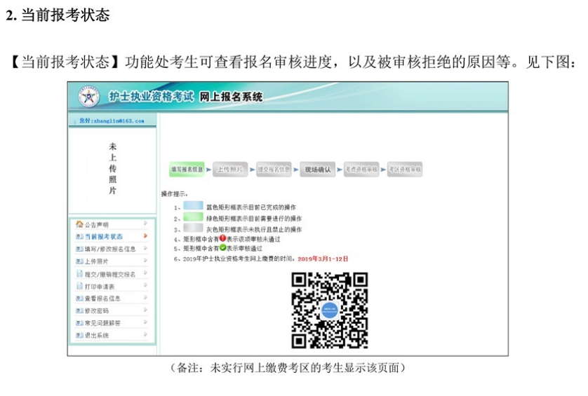 千呼万唤始出来,2019年的护士执业资格考试报名正式开始!大家从现在开始就可以陆续开始登录页面进行网上报名了。注意:本次报名分为网上报名和现场确认两个步骤,先在网上报名,再进行现场确认。 2019年全国各地的现场确认地点,缴费情况已出,截止节日,已有将近90个地区发布公告。详情点击查看《2019各考区考试公告、现场确认及缴费汇总》! 2019护考报名操作流程如下: 1、扫描下方中国卫生人才网的二维码进入网站 2、登录 3、查看当前报考状态 4、填写/修改报名信息 注意事项: 5、上传照片 6、提交/撤销提交信息 撤销已提交的信息步骤: 7、打印申请表 8、查看报名信息 9、网上缴费 10、修改密码 11、常见问题解答 12、退出系统 我们能提前预知分数线,当然知道考什么!课程咨询热线:400-6286615 我们连续六年精准预测了护士考试分数线和考试大纲,扫描下面的“ChinaNERC”微信二维码或加QQ群号:656216869、780460254。即可提前获取各种最近护考信息: 扫一扫关注护理研究中心二维码