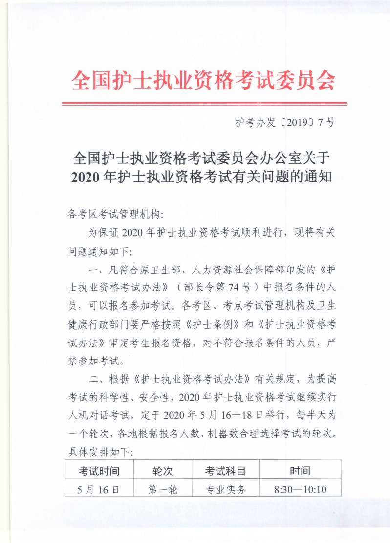 号外!号外!中国卫生人才网通知:2020年护士资格考试时间已定:2020年5月16——5月18日! 详情内容博傲教育小编整理如下: 看看,今年护考时间公布如此之早,是不是意味着2020年护考有新的变化的呢? 关于2020年护考报名条件、报名时间、护考大纲及有何变化等最新护考资料,请扫描下方二维码进群咨询! 我们能提前预知分数线,当然知道考什么!课程咨询热线:400-6286615 我们连续六年精准预测了护士考试分数线和考试大纲,扫描下面的“ChinaNERC”微信二维码或加QQ群号:656216869、780460254。即可提前获取各种最近护考信息: 扫一扫关注护理研究中心二维码 扫描下方金题二维码即可免费注册APP,海量模拟真题等你来!