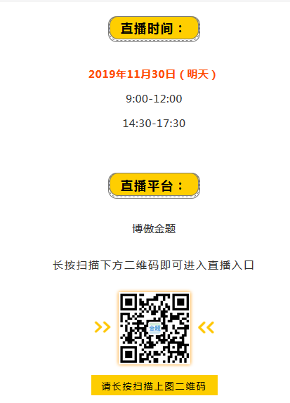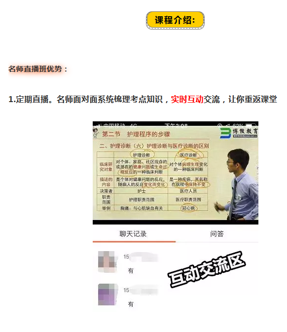 各位护资考生,20年护考报名即将开始,护考复习想必也已纳入各位的行程当中,小编提醒你,这周六,将有一场护考免费公开课,不用花钱就可听到专业老师的辅导教授,即提分又实惠,你还在等什么? 直播课详情博傲小斌整理如下,一起来看看吧! 今天就说到这里,至于2020年护考报名条件、报名所需材料、往届生报名注意事项、护考变化等等有关护考报名的相关信息,想要尽早获取,请进群咨询! 我们能提前预知分数线,当然知道考什么!课程咨询热线:400-6286615 我们连续六年精准预测了护士考试分数线和考试大纲,扫描下面的“ChinaNERC”微信二维码或加QQ群号:656216869、780460254。即可提前获取各种最近护考信息: 扫一扫关注护理研究中心二维码 扫描下方金题二维码即可免费注册APP,海量模拟真题等你来!