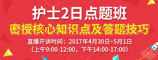 4月19日博傲教育推出五日金题班引起护士学员的一致好评,已报名人数突破几千人,经博傲教育护士名师商讨,又推出你另一个成功的杀手锏:护士2日点题班! 2日点题班班次详细介绍: 护士2日点题班-密授必考点及答题技巧 一、直播开讲时间: 2017年4月30日~5月1日(上午9:00-12:00,下午14:00-17:00)。 二、直播主讲老师:由博傲独家讲师关老师主讲。全封闭全真做考卷,全封闭直播讲考卷,强化重要重点,密授答题技巧,确保临场发挥! 三、听课注意事项:考生务必在直播开讲前完成做题,以提高听课效果。在直播开讲前2-5天,会将题目上传“博傲金题APP”(手机端/PC端)的“模拟考场”供学员提前做题,建议严格按照考试要求答题,最好选择PC端答题,以全真模拟人机对话,体验考试氛围。答题完毕提交后,通过直播课获取答案和讲解。博傲金题APP(手机端/PC端)安装链接: 四、听课权限授予:请相关业务部门和招生老师提前统计、通知和引导学员进入课堂。听课学员名单【表格格式:姓名+电话(必填,否则无法做题)+QQ+单独购买/班次配送+备注】需由各招生部门最迟于4月28日提交财务部,经核准后,方可授权做题。2日点题班通过“淘宝教育”平台直播授课。 五、2日点题班购买链接: 我们能提前预知分数线,当然知道考什么!课程咨询热线:400-168-0561 我们连续五年精准预测了护士考试分数线和考试大纲,扫描下面的“boaohuli”微信二维码或加QQ群号:516874108、316414596。即可提前获取各种最近护考信息: 扫一扫关注博傲护理二维码 首款完全按照“人机对话”开发的免费软件,历年真题一网打尽!